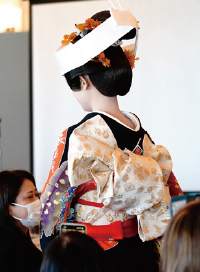 喜井先生の作品は、二つ目の結びの最後にがらりと雰囲気が変わり、とても驚きました。モデルさんに良く似合う可愛らしいアレンジでした。 佐藤先生の作品は、古典的で清楚、品格のある素敵な作品でした。