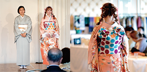 〈引き振袖〉前田敏恵 /〈洋髪の色打掛花嫁〉藤井京子
